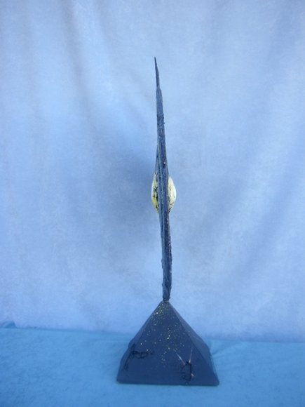 Here is a side-view of the galaxy sculptures showing the central hub/bulge and thin disc surrounding it.